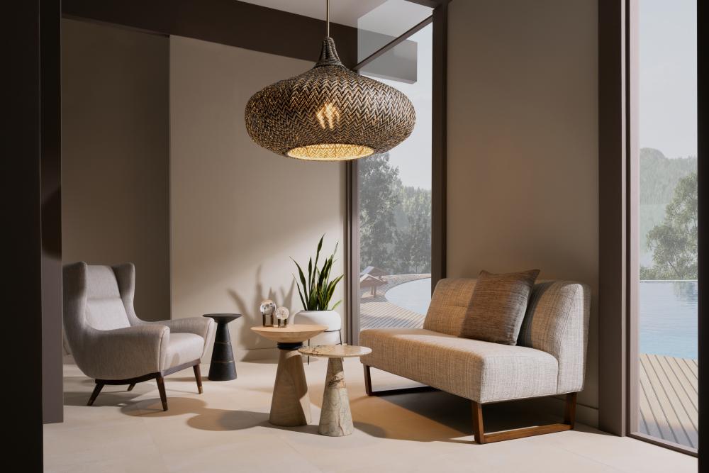 DESIGNED IN A CLEVER ONION SHAPE, THE TULUM PENDANT BESTOWS A GLOBAL SENSIBILITY TO A SPACE. THE ARTISAN PIECE IS HAND-WOVEN IN A CHEVRON PATTERN IN BLACK AND NATURAL RATTAN. AN IRON PIPE SUSPENSION WITH AN ANTIQUE BRASS FINISH COMPLETES THE PENDANT. FINISH WILL VARY.
