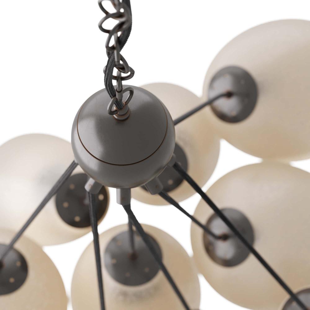 ENLIVEN ANY SPACE WITH OUR SPIRITED AND INSPIRED WILKES CHANDELIER. IN A CLUSTER OF ORGANIC SHAPES, CREATED IN FROSTED AMBER SEEDY GLASS, THE OVERSIZED FIXTURE IS FASHIONED TO RESEMBLE A CLUSTER OF BUBBLES. THE PLAYFUL PIECE, WITH ENGLISH BRONZE STEEL CHAIN-LINK SUSPENSION, FILLS A SPACE WITH A SOFT, WARM GLOW. FINISH WILL VARY. DAMP-RATED, ALTHOUGH LIMITED COVERED OUTDOOR CONDITIONS MAY AFFECT FINISH.