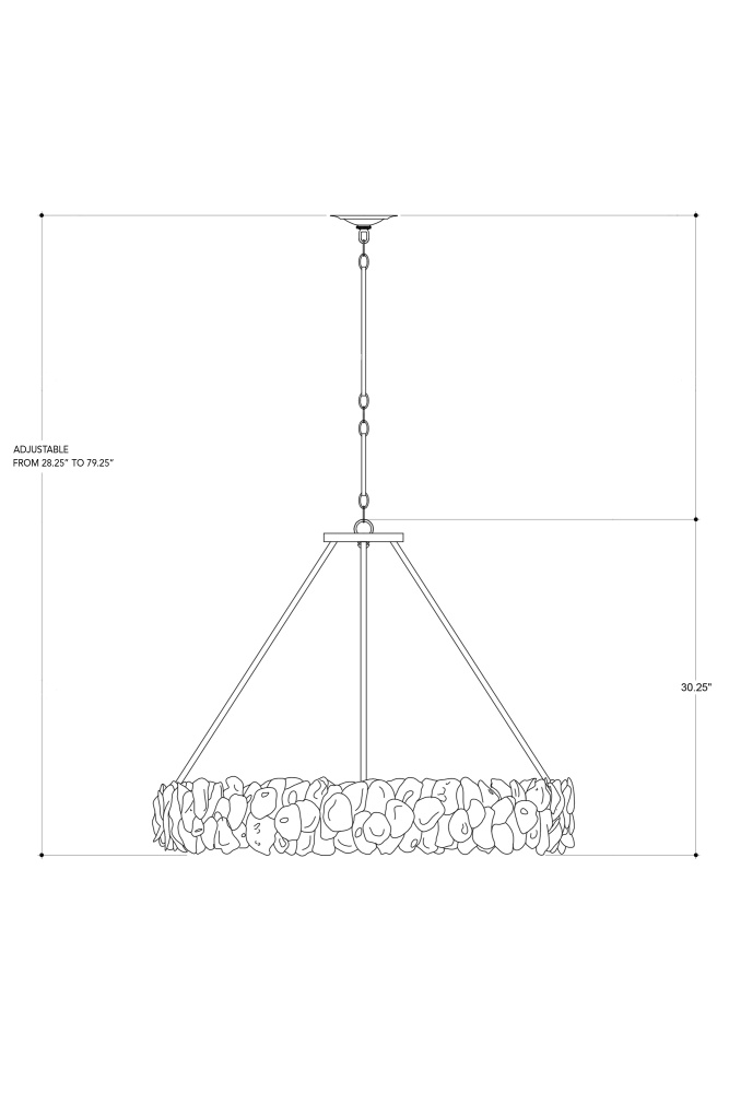 Our Oyster Chandelier with its ring of natural oyster shells bursting with seaside tones and textures has a robust charm. The simplicity and rusticity of the wrought iron frame in a textured bronze finish make this shell chandelier a bold centerpiece. Adjustable from 35.25" to 79.25" with use of included chain/rod kit/cable. If your space calls for a longer drop, additional chain/rods/cable is available for purchase.